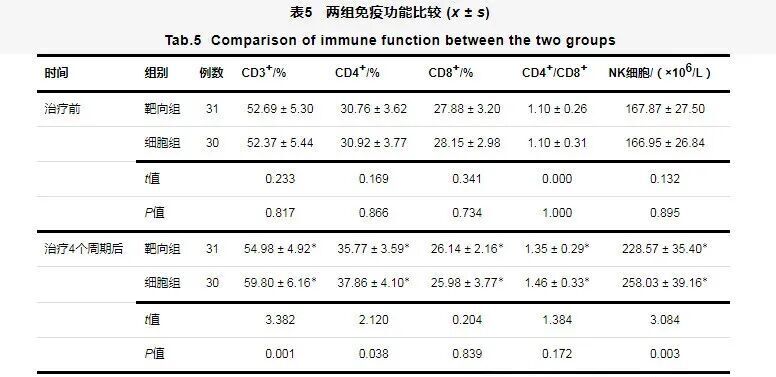 经过4个周期治疗,细胞组在多项指标上优于靶向组,证实自体NK细胞的积极贡献。