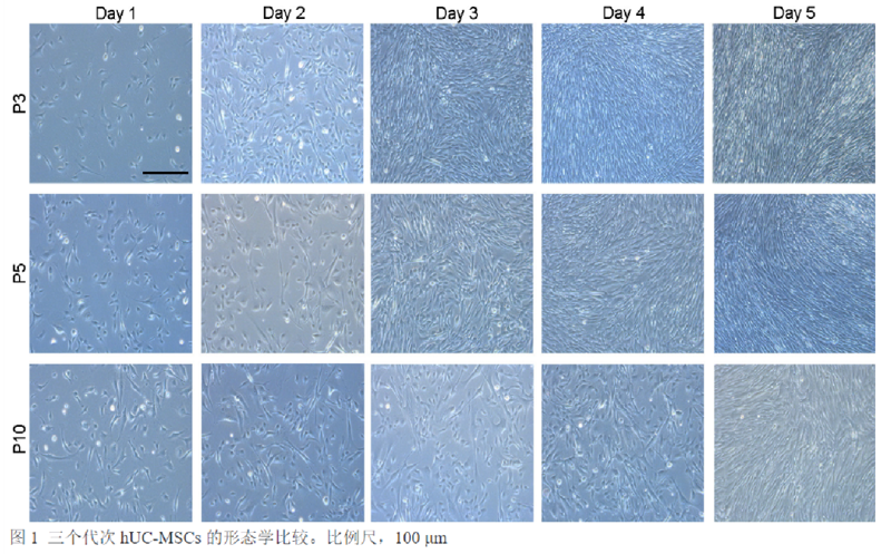 中国组织化学与细胞化学杂志的研究文献《不同代次人脐带间充质干细胞生物学特性评估》通过研究P3、P5、P10三个代次的hUC-MSCs,给出了研究结论: