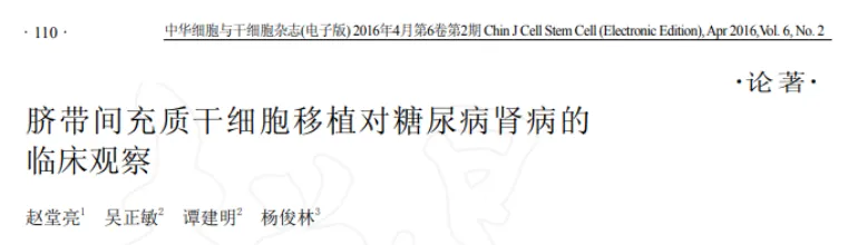 中华细胞与干细胞杂志上的一项研究,对15例高血压伴糖尿病肾病受试者在常规治疗的基础上进行脐带间充质干细胞相关的临床研究;另有15例使用常规治疗(口服抗高血压药物)作为对照组。两组受试者均持续治疗1个月,参加研究前后3个月监测受试者收缩压、舒张压。